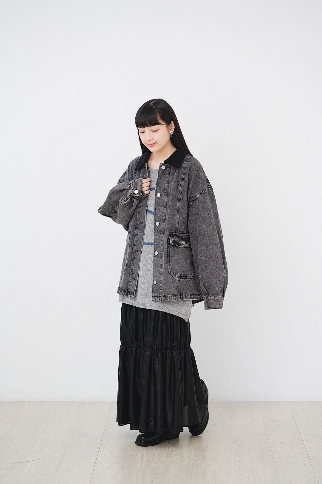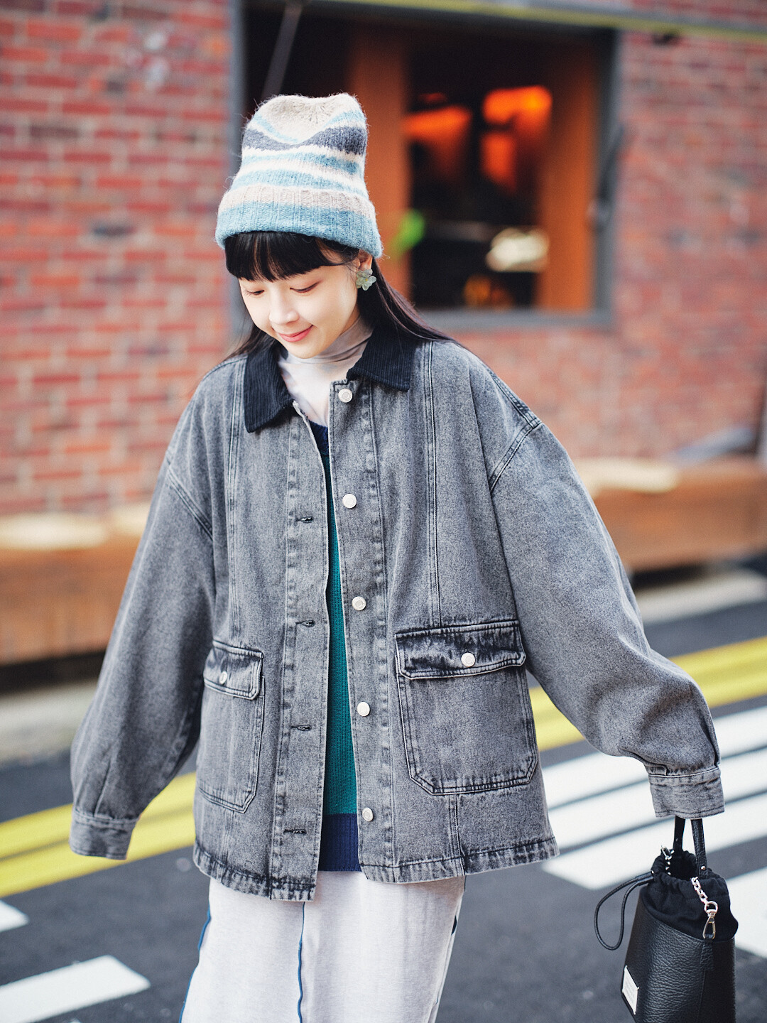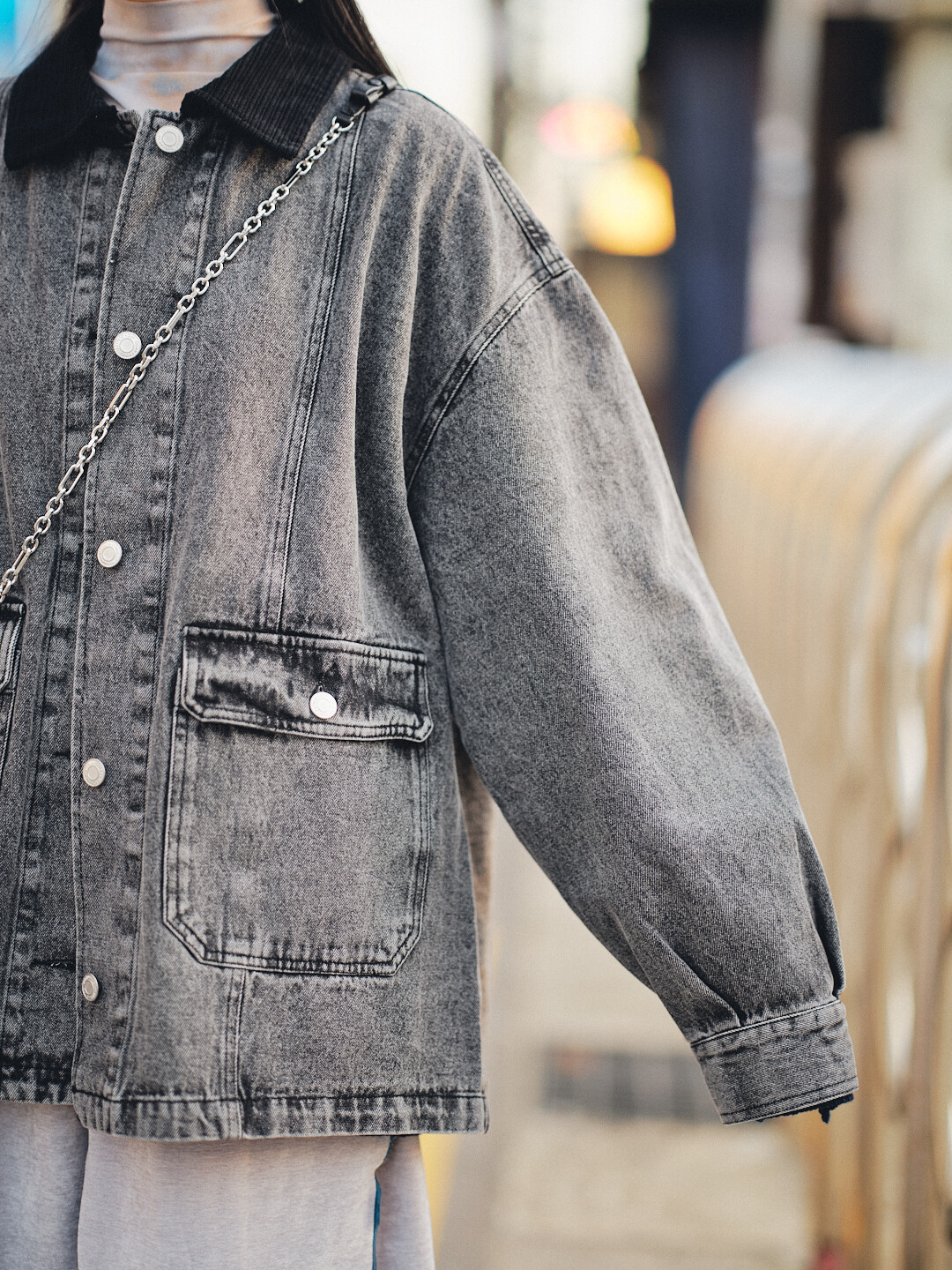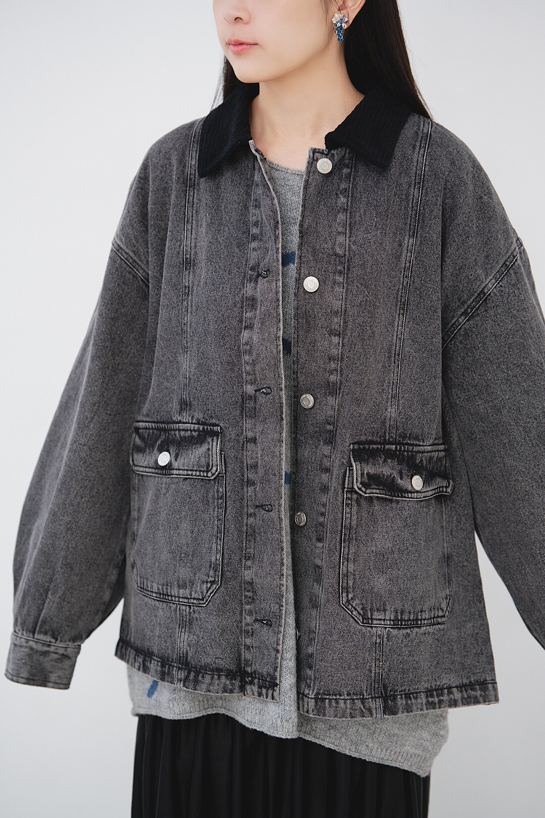 ▫️黑色水洗丹寧,搭配黑色燈芯絨領。
