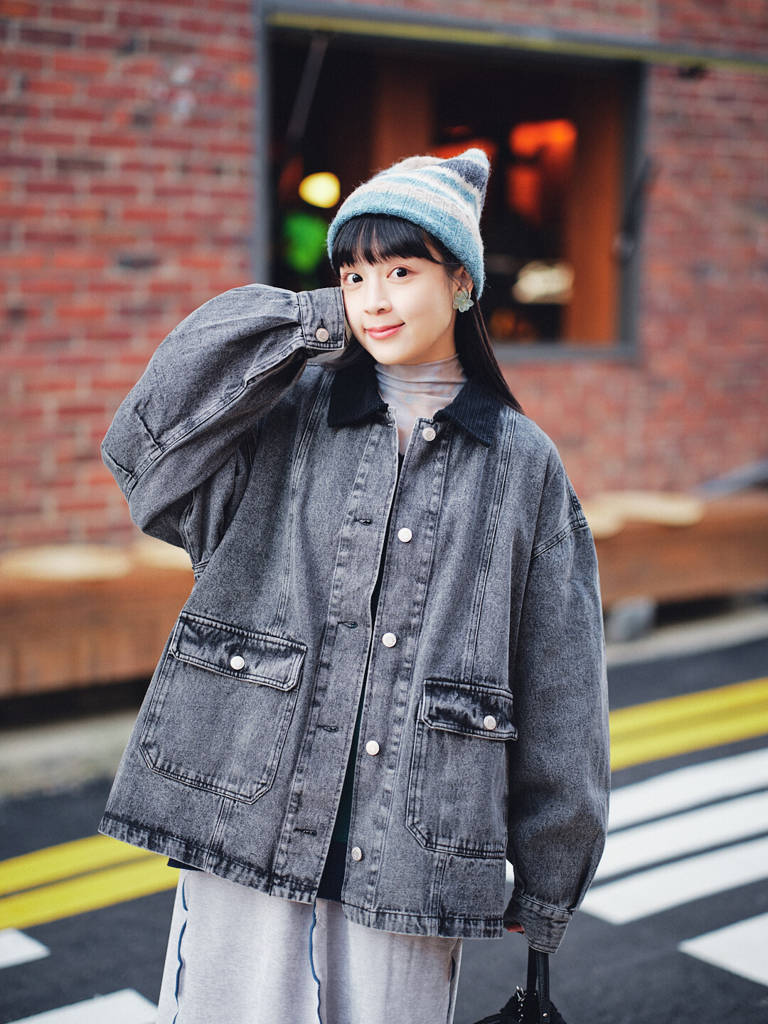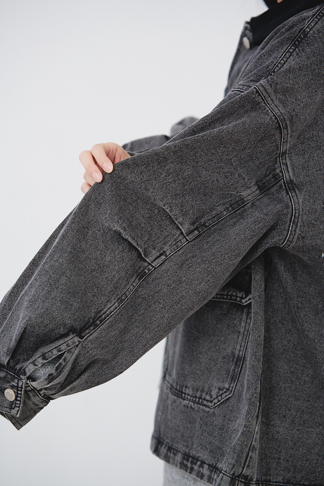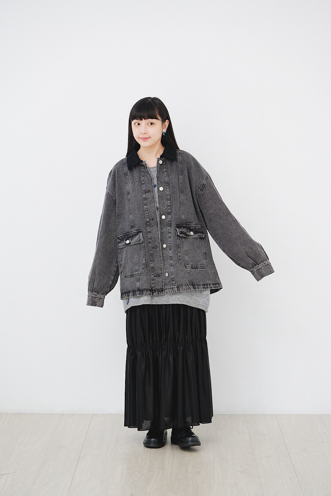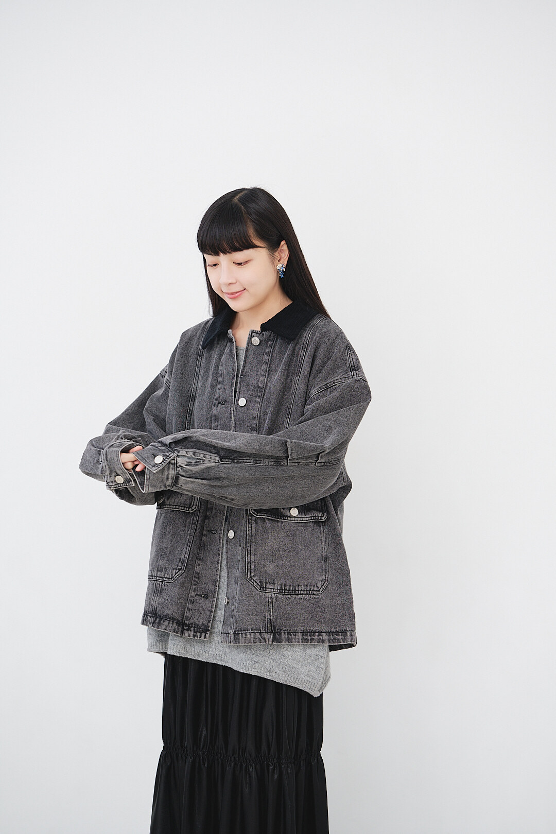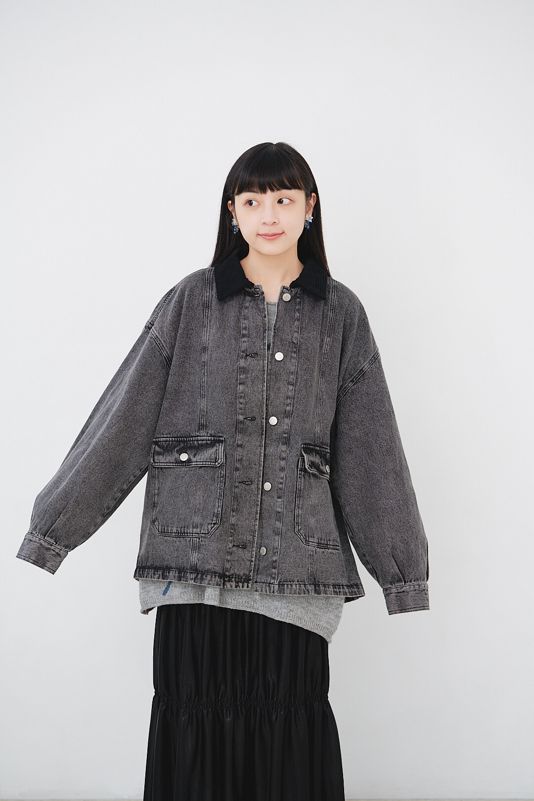 ▫️黑色水洗丹寧,搭配黑色燈芯絨領。