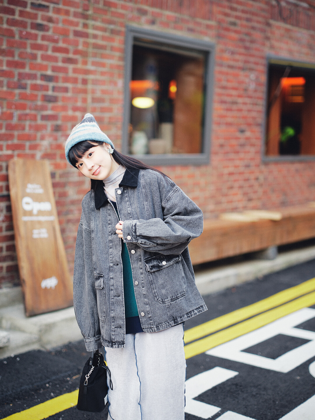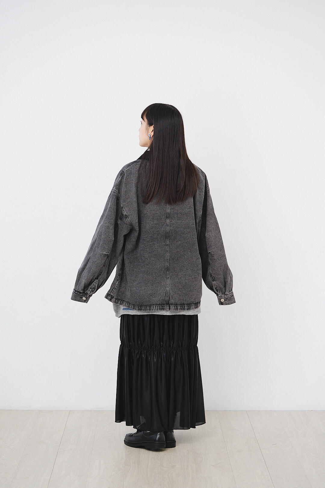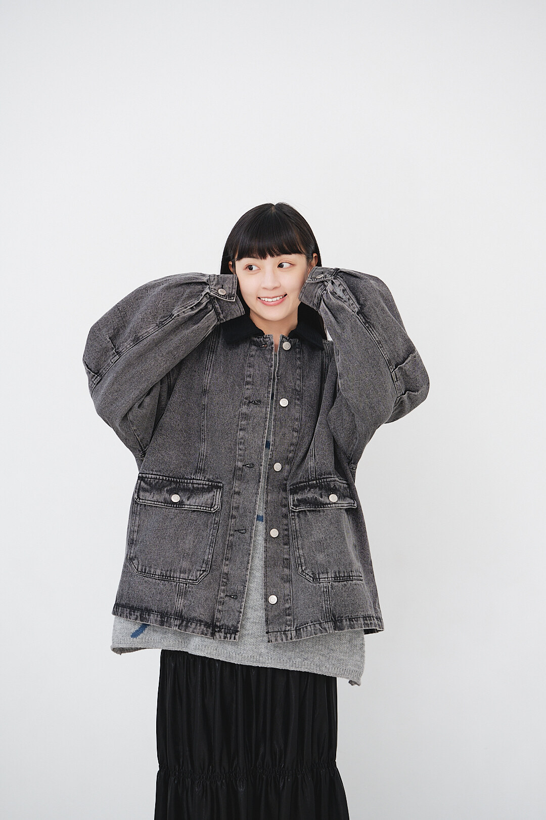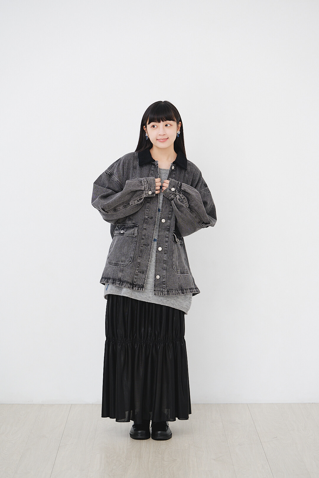 ▫️黑色水洗丹寧,搭配黑色燈芯絨領。