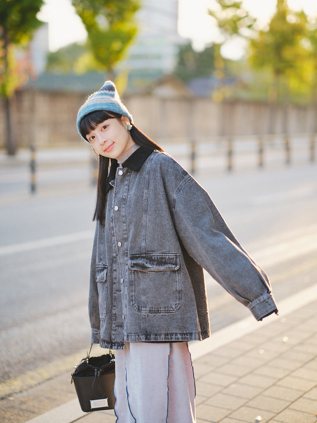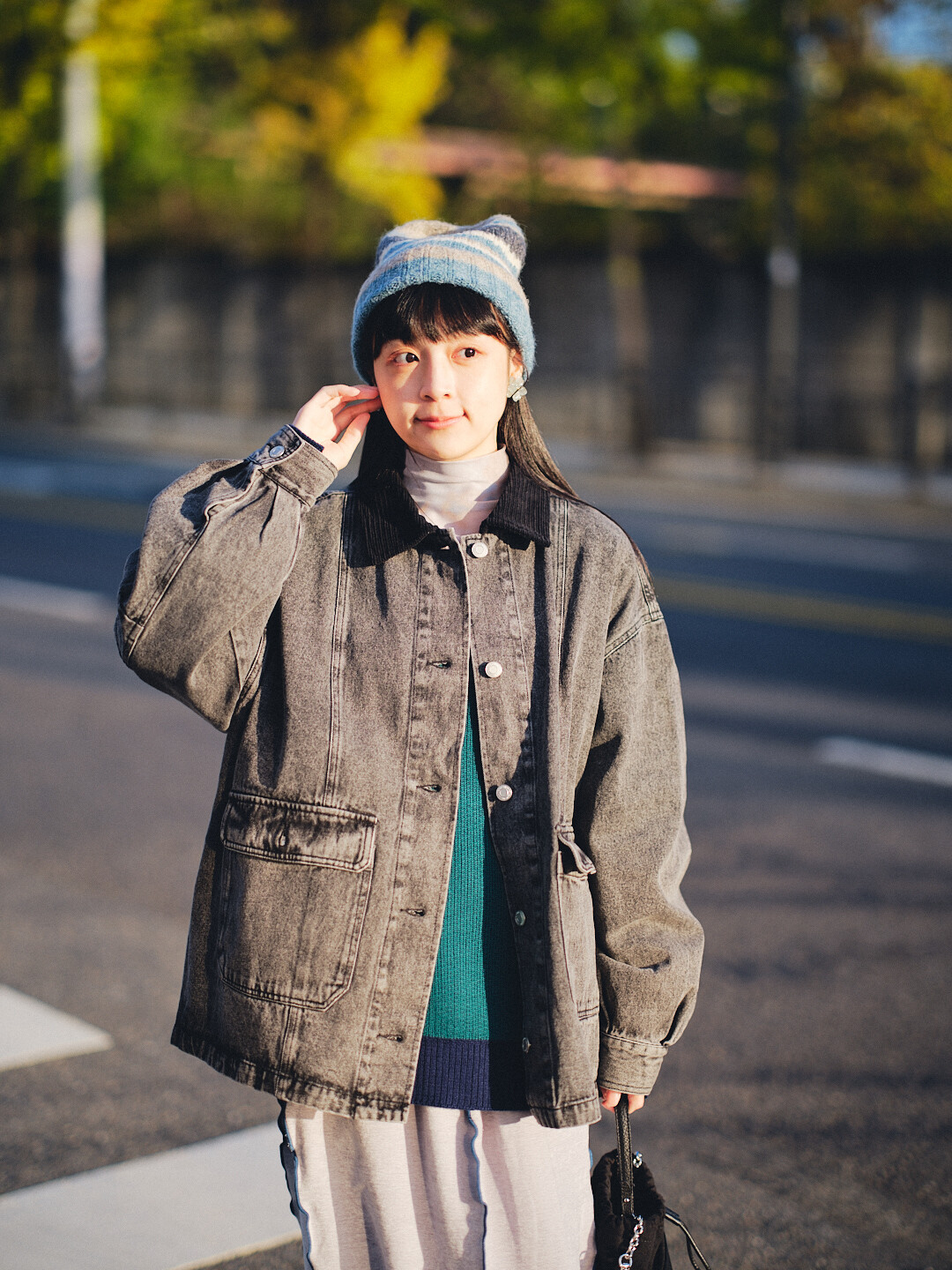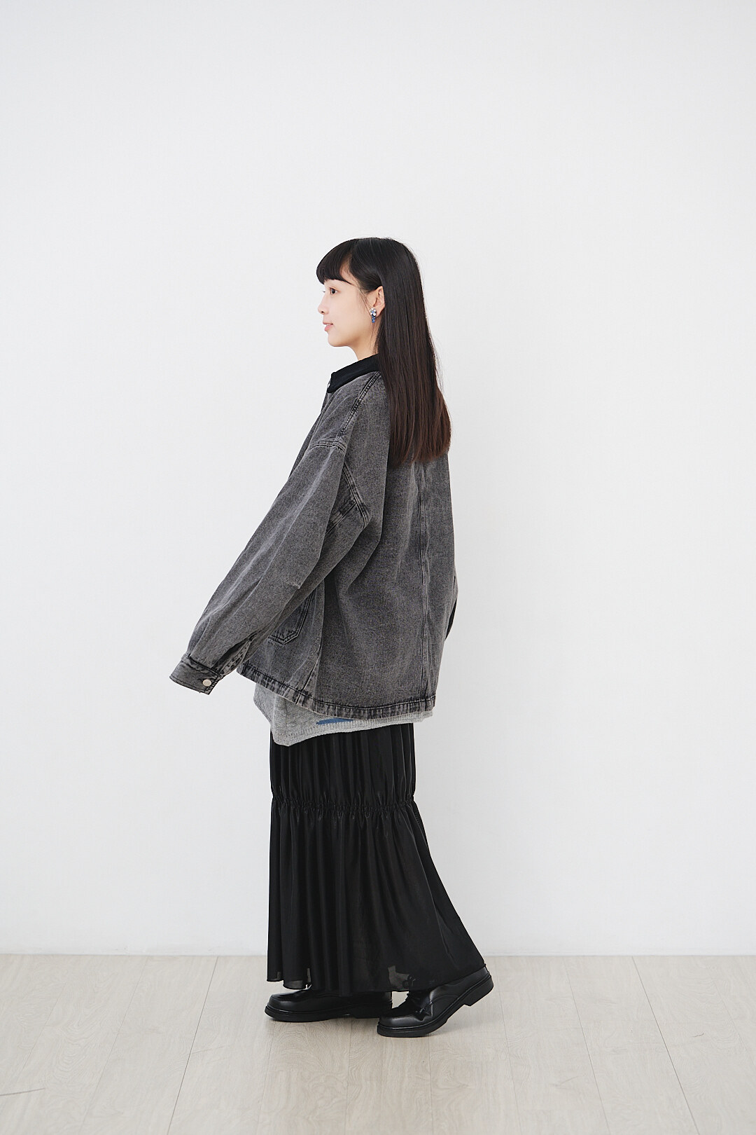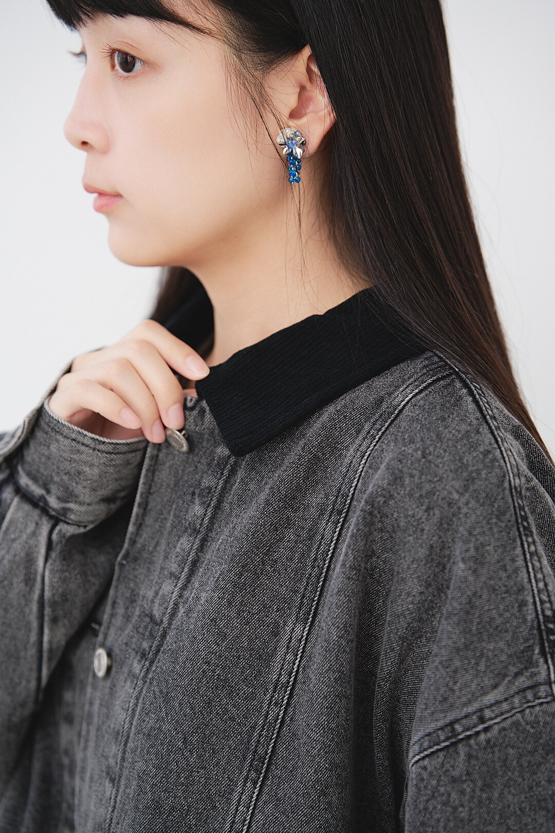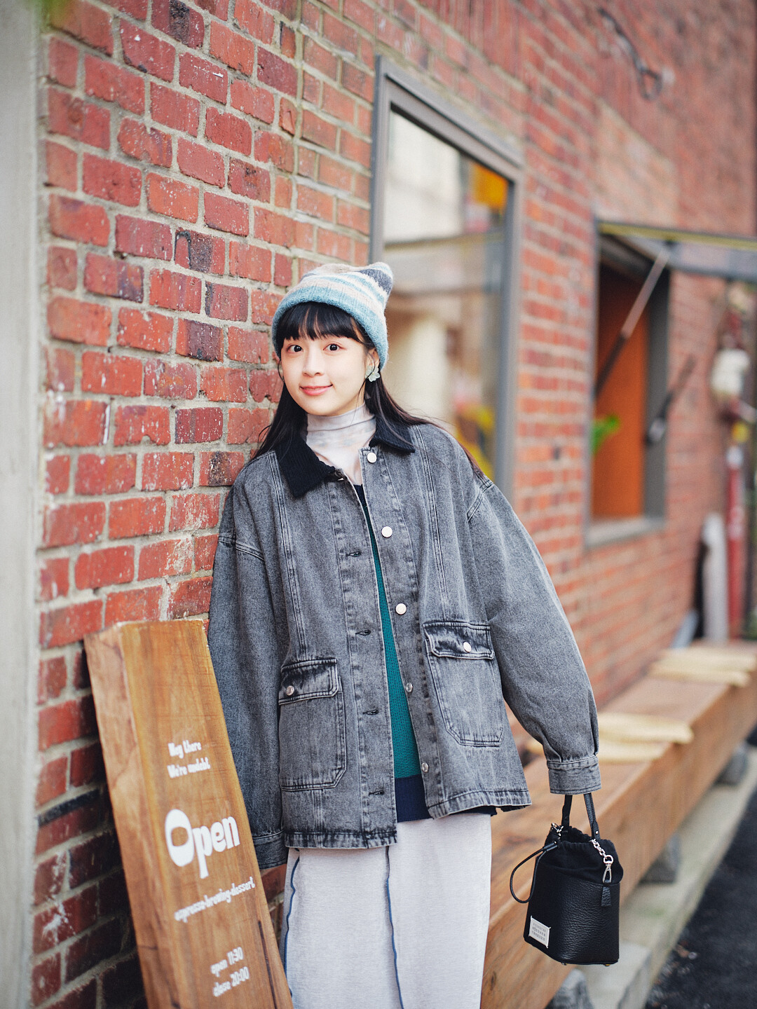 ▫️黑色水洗丹寧,搭配黑色燈芯絨領。