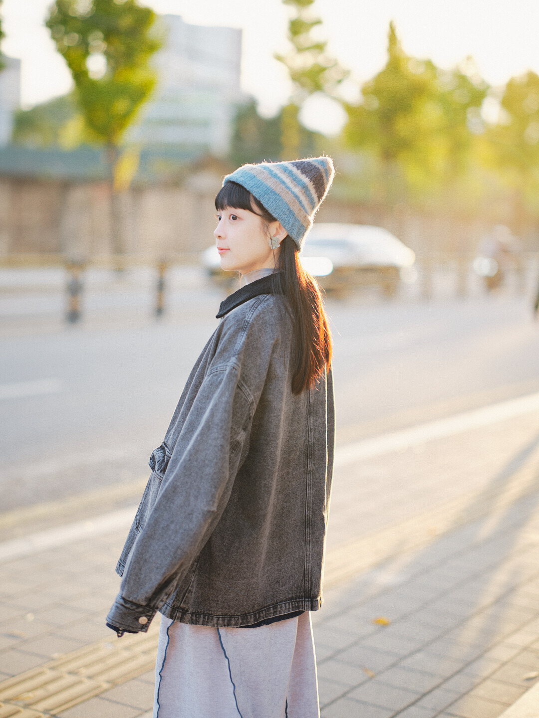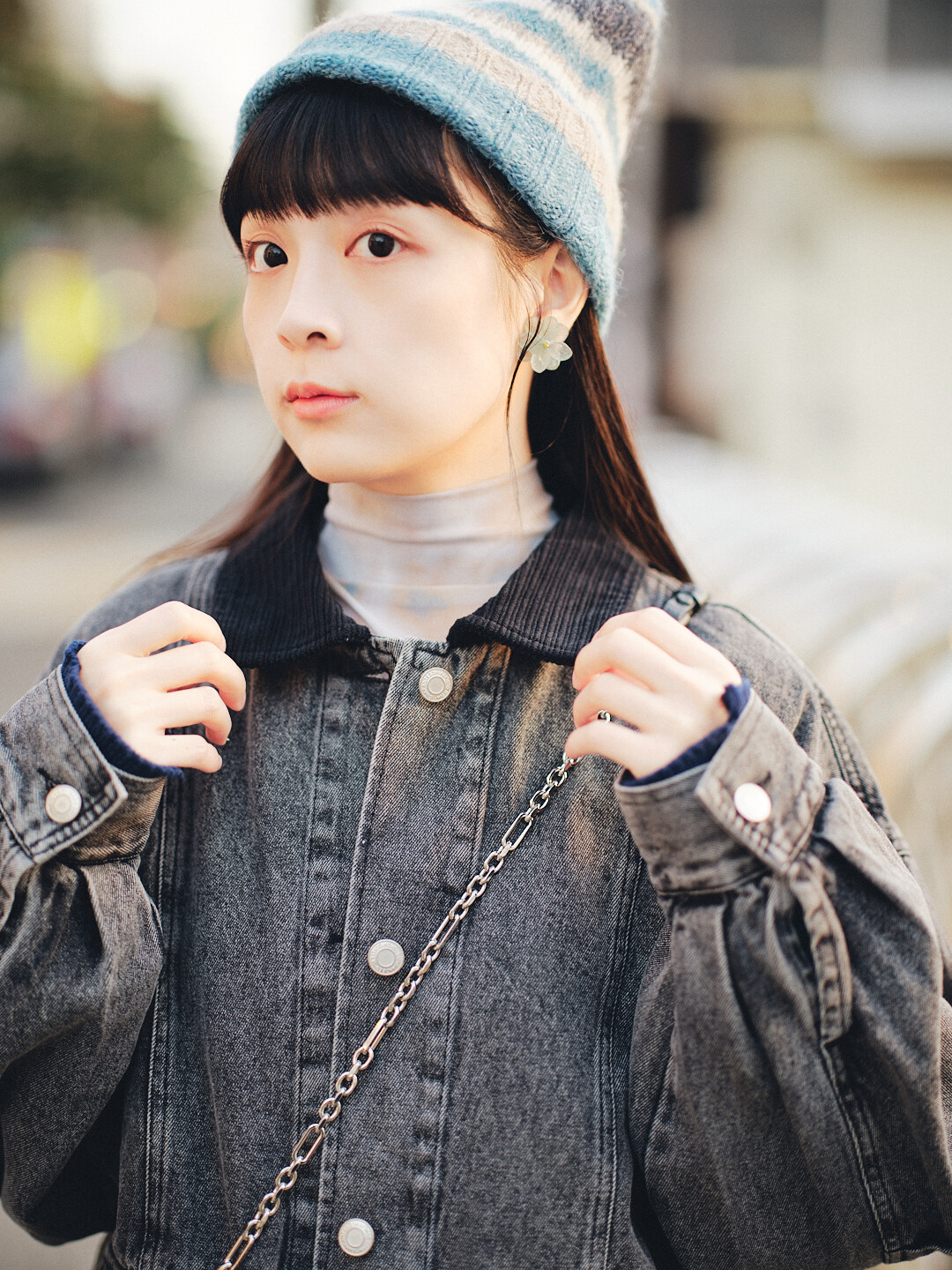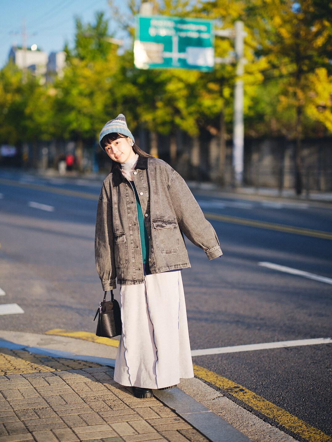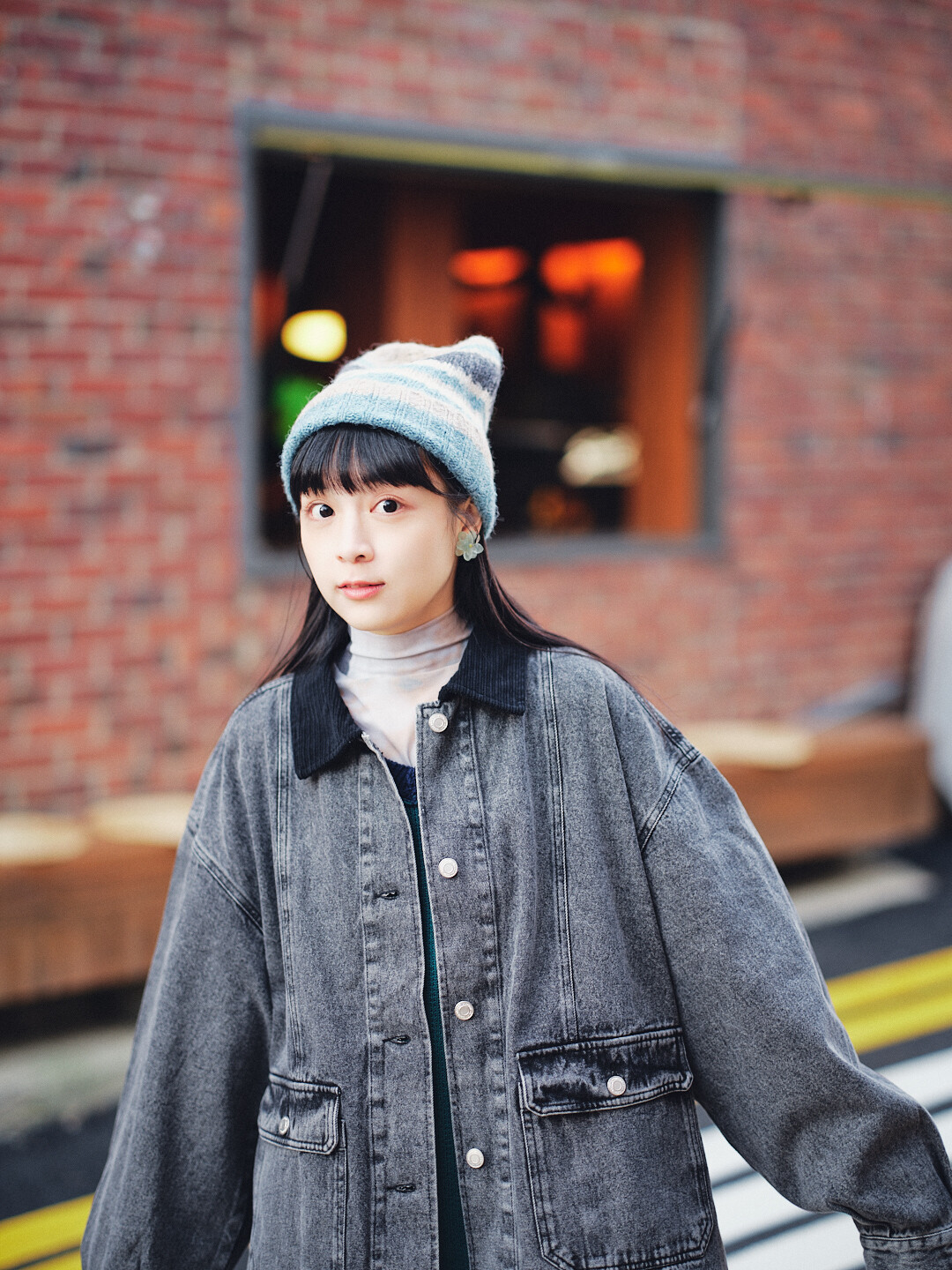 ▫️海軍藍丹寧,搭配棕色燈芯絨領。