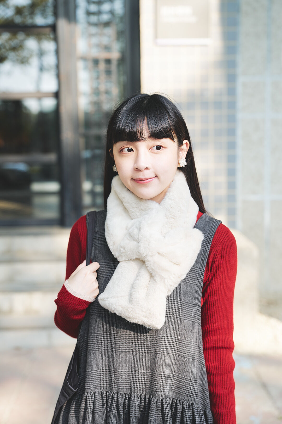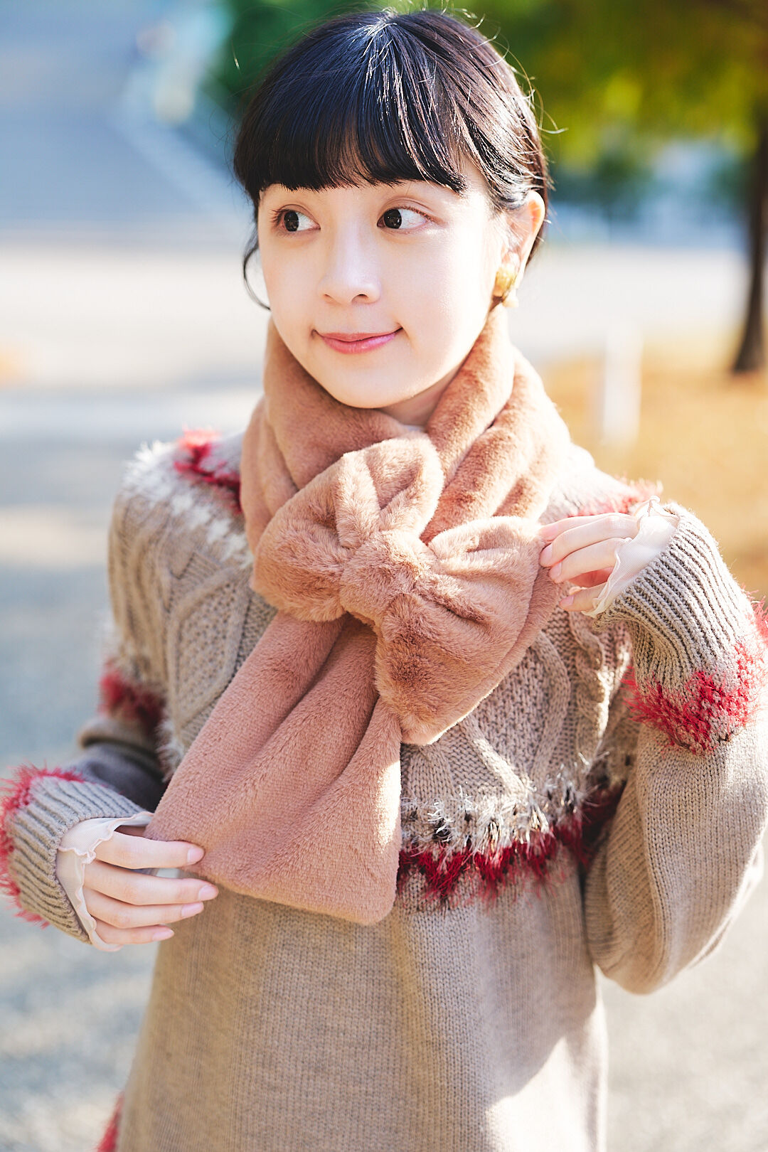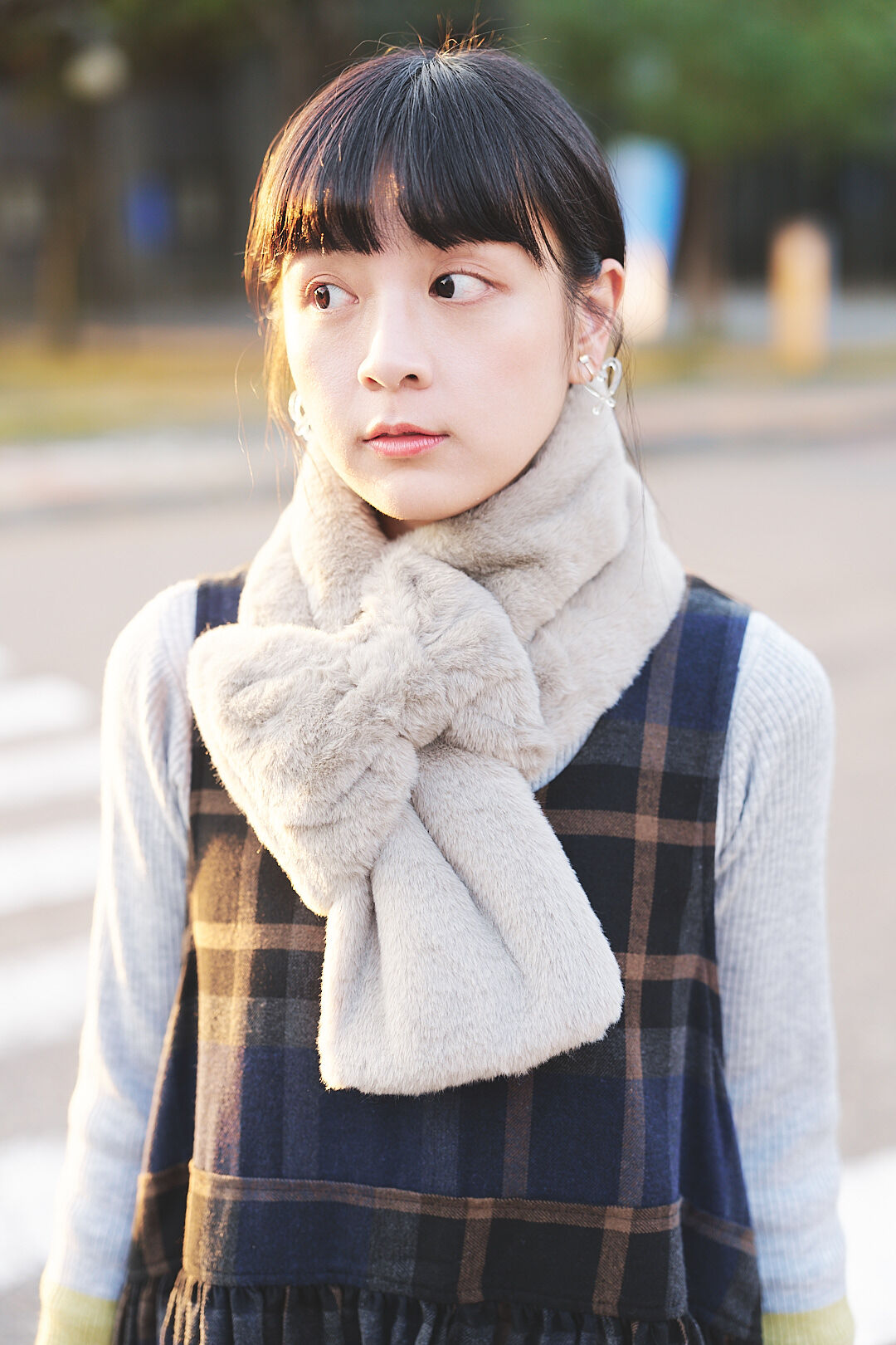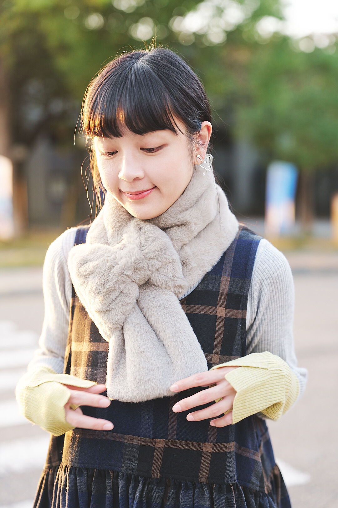 是一款不過於甜膩、成熟可愛的毛絨圍巾!