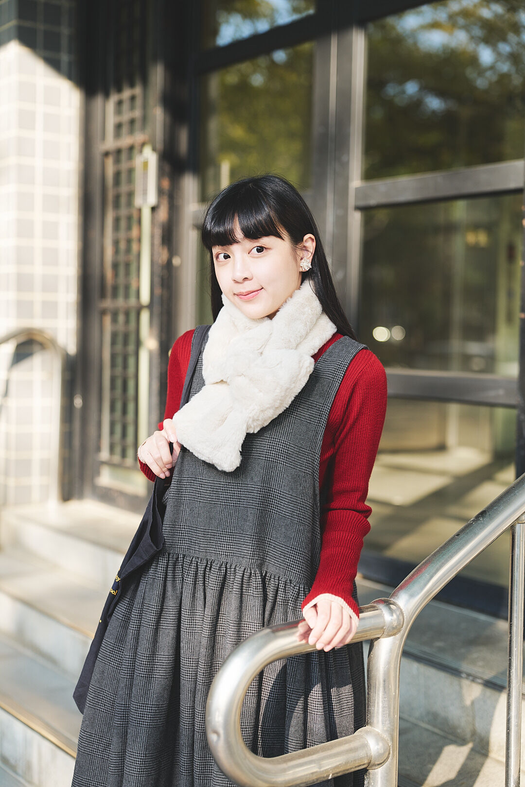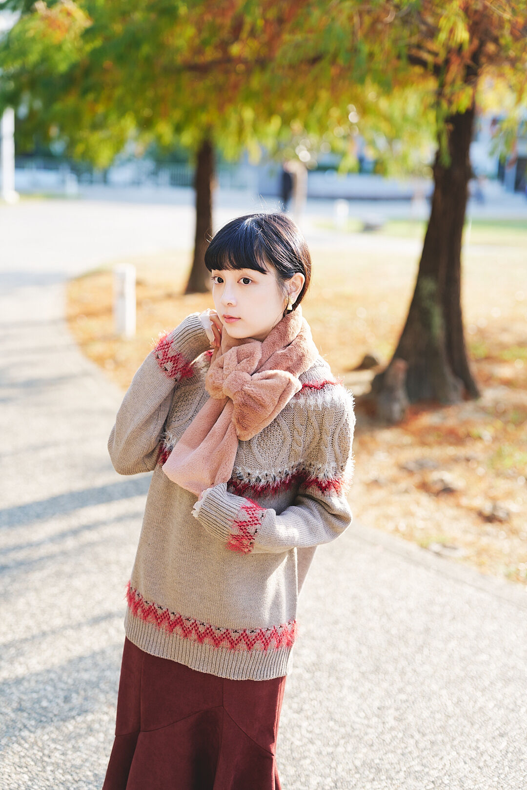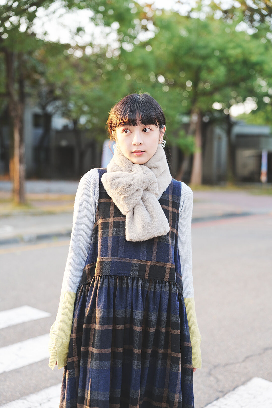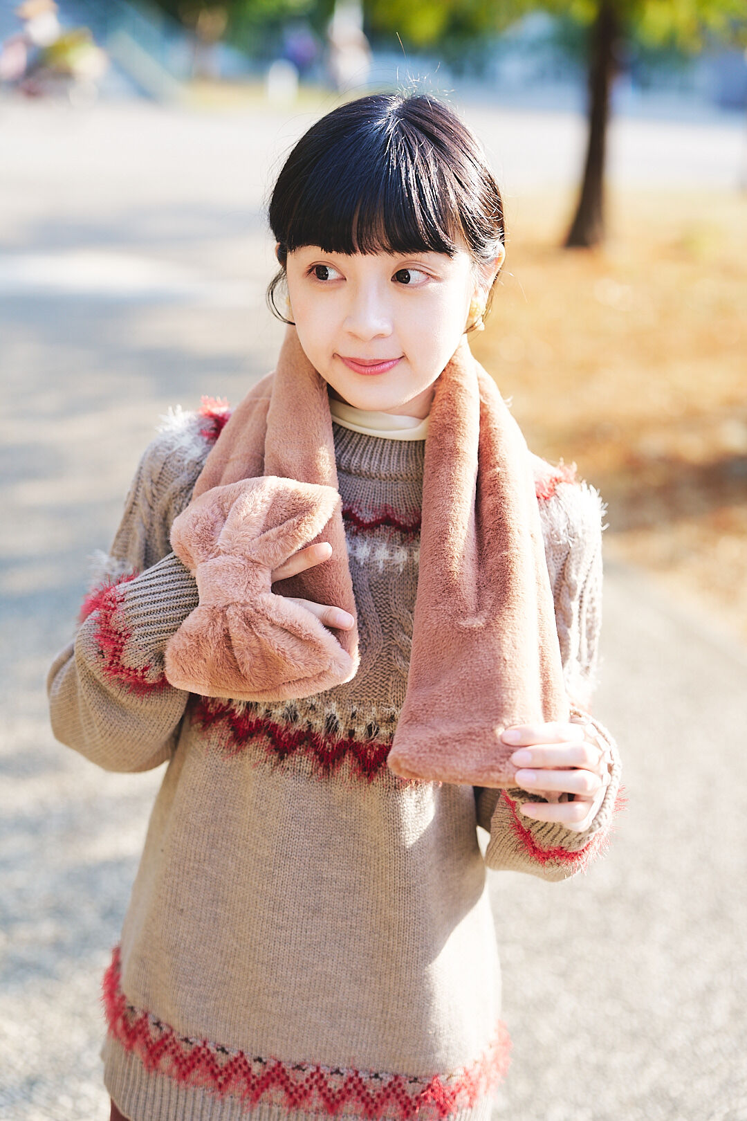是一款不過於甜膩、成熟可愛的毛絨圍巾!